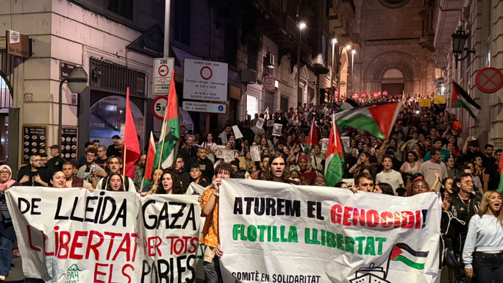 La portavoz de Comú de Lleida, Laura Bergés, señaló: “condenamos con la máxima firmeza el ataque contra la Flotilla Global Sumud y la detención ilegal de sus miembros que precisamente estaban cumpliendo con la obligación de dar socorro y apoyo humanitario a una población que está siendo víctima de un genocidio. La Global Sumud Flotilla no es ilegal. Lo que es absolutamente ilegal es el asedio y los ataques genocidas que Israel mantiene sobre el pueblo palestino”
