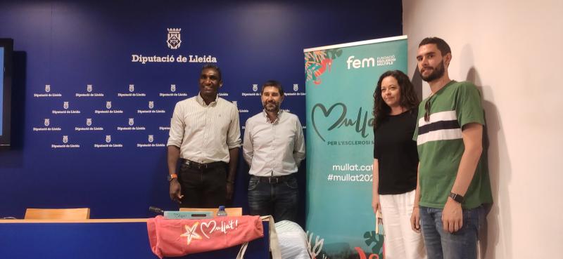 La sala de prensa del Palau de la Diputación de Lleida ha acogido esta mañana la presentación del 'Mulla't per l'esclerosi múltiple 2024' que este año celebra su 32ª edición en más de 100 piscinas en la demarcación de Lleida, con un acto central que tendrá lugar el 14 de julio a las 12.00 horas en las piscinas municipales de Balàfia y que también se celebrará en más de 500 piscinas por toda Cataluña.