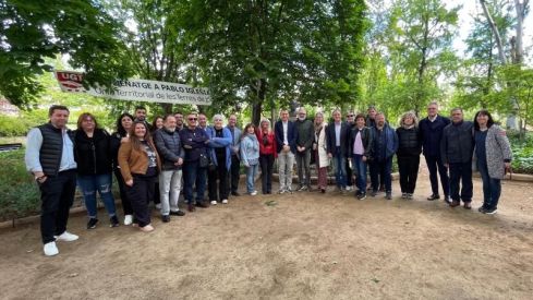 Ordenig, junto a los candidatos Judith Alcalà y Manel Ezquerra, así como otros cargos orgánicos e institucionales del PSC a la tradicional ofrenda al monolito de Pablo Iglesias, en los Campos Elíseos, y en la manifestación del 1 de Mayo organizada por los sindicatos mayoritarios en Lleida.