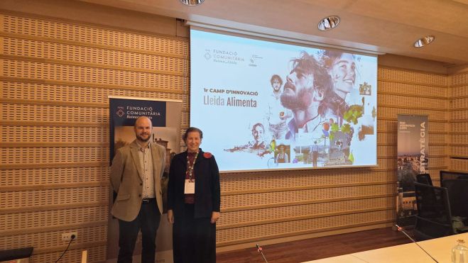 El vicepresidente del Patronato de Promoción Económica de la Diputación de Lleida, Jordi Verdú, y la presidenta de la Fundación Comunitaria Raimat Lleida, Elena de Carandini, han presentado este miércoles una alianza estratégica entre la Diputación de Lleida, a través del Patronato de Promoción Económica, y la Fundación Comunitaria Raimat Lleida (FCRLL) que refuerza la colaboración público-privada que promueve la Agenda Compartida “Lleida, Terra d’Oportunitats”.