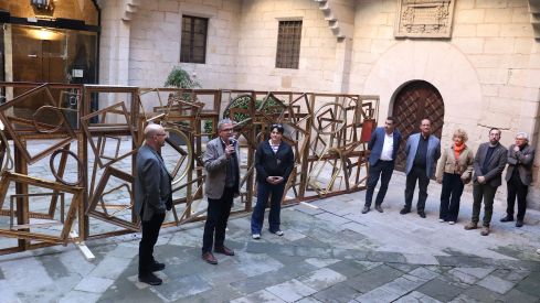 La instalación, que se puede visitar en el Patio del IEI hasta el 25 de abril, está formada por un gran panel de 10 metros por 2 integrado por marcos de madera dorados de diferentes formas y tamaños, con la colaboración técnica de Jaume Ramon ‘Dodó’. La obra propone una reinterpretación abierta y contemporánea de la leyenda de Sant Jordi.