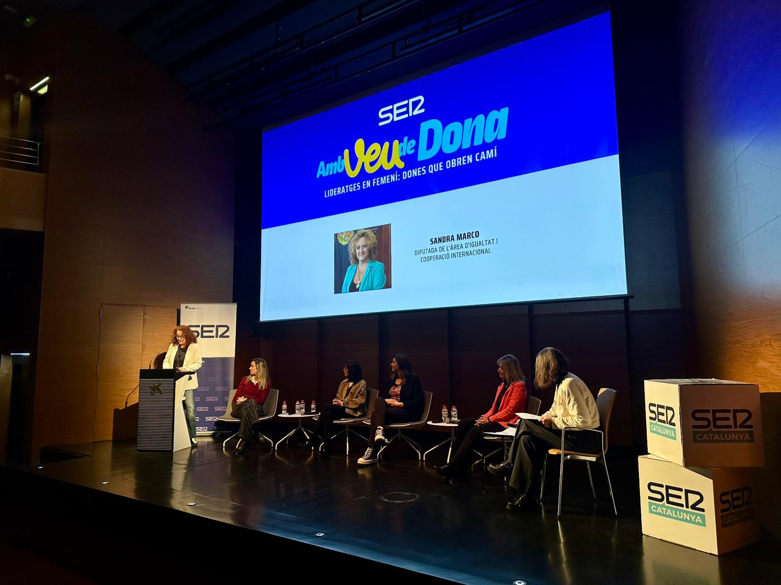 La diputada de Igualdad y Cooperación Internacional, Sandra Marco, ha dado la bienvenida institucional de la jornada “Con voz de Mujer: Liderazgos en femenino: Mujeres que abren camino”, organizada por Ràdio Lleida-Cadena SER en el CaixaForum Lleida.