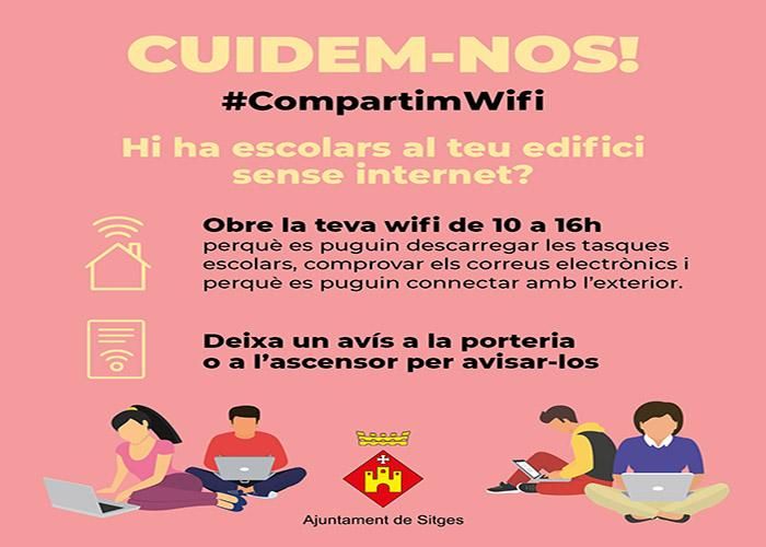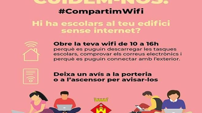 Paralelamente, se pide a las comunidades vecinales compartir WIFI de 10 h a 14 h para que los escolares que no tienen internet se puedan descargar las tareas del día que la escuela encarga, comprobar los correos electrónicos y comunicarse con el exterior. Se propone dejar un aviso en la portería de la comunidad o en el ascensor, para avisar.