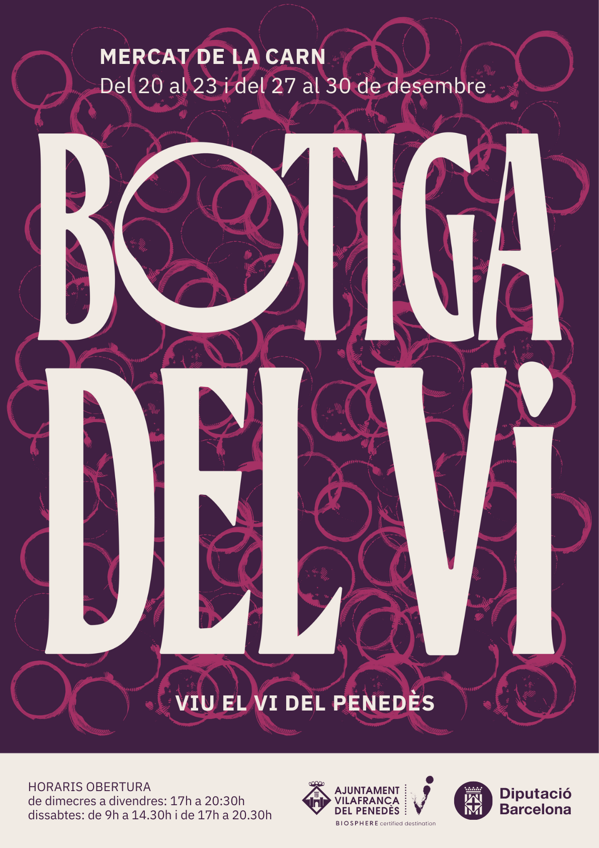 El Ayuntamiento de Vilafranca impulsa esta Navidad La Botiga del Vi, un espacio en formato pop up, es decir efímero, que se instalará en el Mercat de la Carn de miércoles a sábado, del 20 al 30 de diciembre. Será un espacio de venta y degustación de vinos del Penedès, con el objetivo de ofrecer una oportunidad para generar emoción alrededor de sus productos y conectar con los clientes.