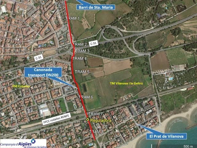 El Prat de Vilanova estará integrado a finales de 2025 en la red de agua potable de Vilanova i la Geltrú. La Compañía Municipal de Aguas ha iniciado las obras que harán posible que el suministro llegue al barrio, y además también mejorará la red y el sistema de distribución. La actuación supondrá una inversión de más de un millón de euros e implica, entre otros, la construcción de una tubería de 900 metros de largo que atravesará la C-31, la vía del tren y la C-246.