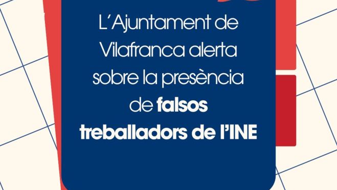 El Ayuntamiento de Vilafranca del Penedès ha emitido un aviso urgente para alertar a la ciudadanía sobre la aparición de falsos trabajadores del Instituto Nacional de Estadística (INE) que se están presentando en domicilios particulares de la villa. Según la información facilitada por el Ayuntamiento, estas personas se hacen pasar por miembros del INE y piden datos personales de los residentes. Los supuestos trabajadores del censo, que llevan un portátil y una cámara para hacer fotografías de los habitantes de las casas, han generado inquietud y preocupación entre la población.