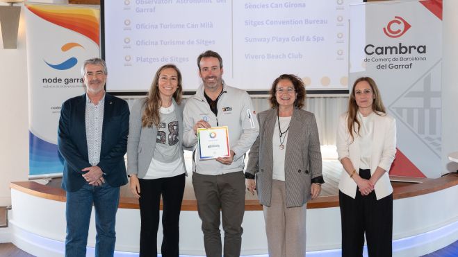 El equipo representativo del Puerto recibió esta certificación acreditativa directamente de los máximos representantes institucionales: la alcaldesa Aurora Carbonell, el presidente territorial en el Garraf de la Cámara Comercial barcelonesa, Xavier Montserrat i Bages, así como de Elisabet González, directora técnica responsable de Oficina Técnica Turismo en la Diputación.