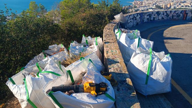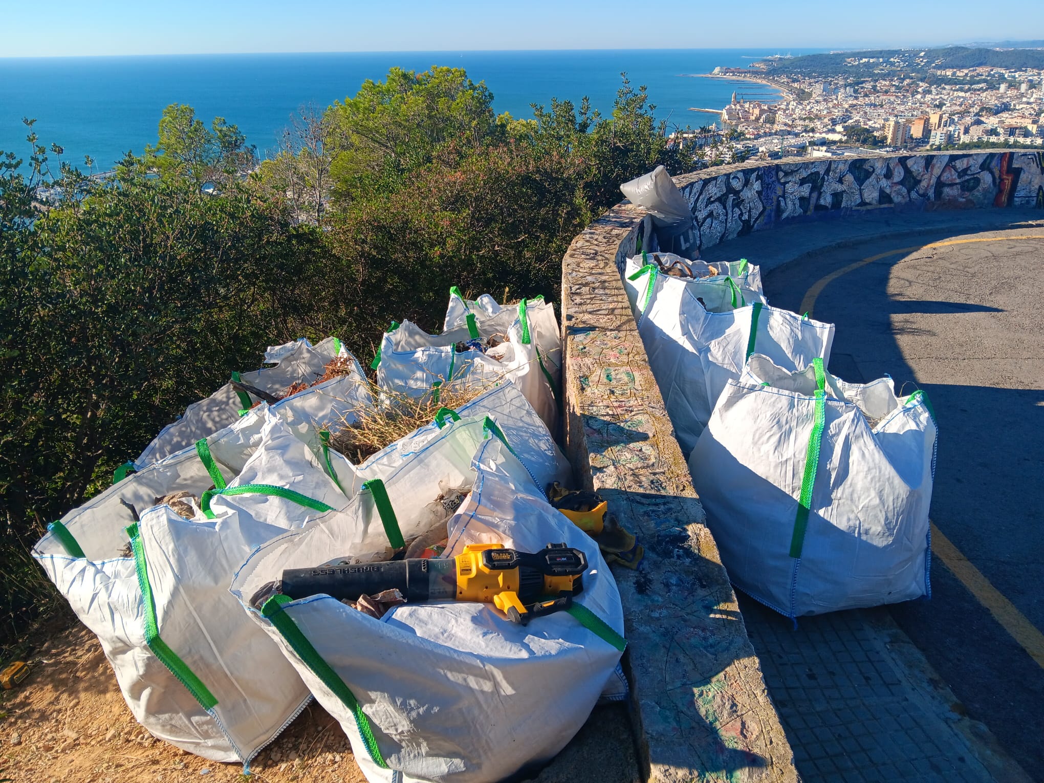 El mirador de la Llevantina vuelve a presentar una imagen cuidada después de que el Ayuntamiento de Sitges haya completado este lunes una nueva actuación de retirada de residuos. La intervención, que ya se llevó a cabo el año pasado, requiere personal y maquinaria especializada, ya que la pendiente y la orografía del sector impiden una limpieza convencional. En esta ocasión, se han recuperado veinte sacos de desechos, el equivalente aproximado a 900 kilos de basura arrojada a la montaña. Una empresa gestora autorizada ha asumido su tratamiento.