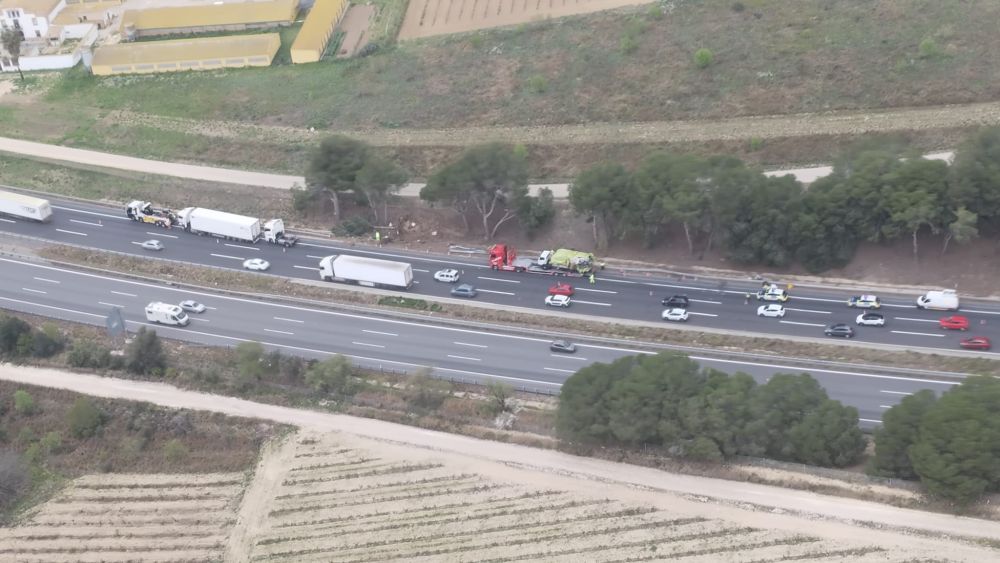 Según ha informado el Servei Català de Trànsit, las retenciones acumuladas llega a los 6 kilómetros, con puntos de parada entre Vilafranca del Penedès y Castellví. Inicialmente se han cortado dos carriles, pero posteriormente solo uno de ellos todavía se encuentra restringido.