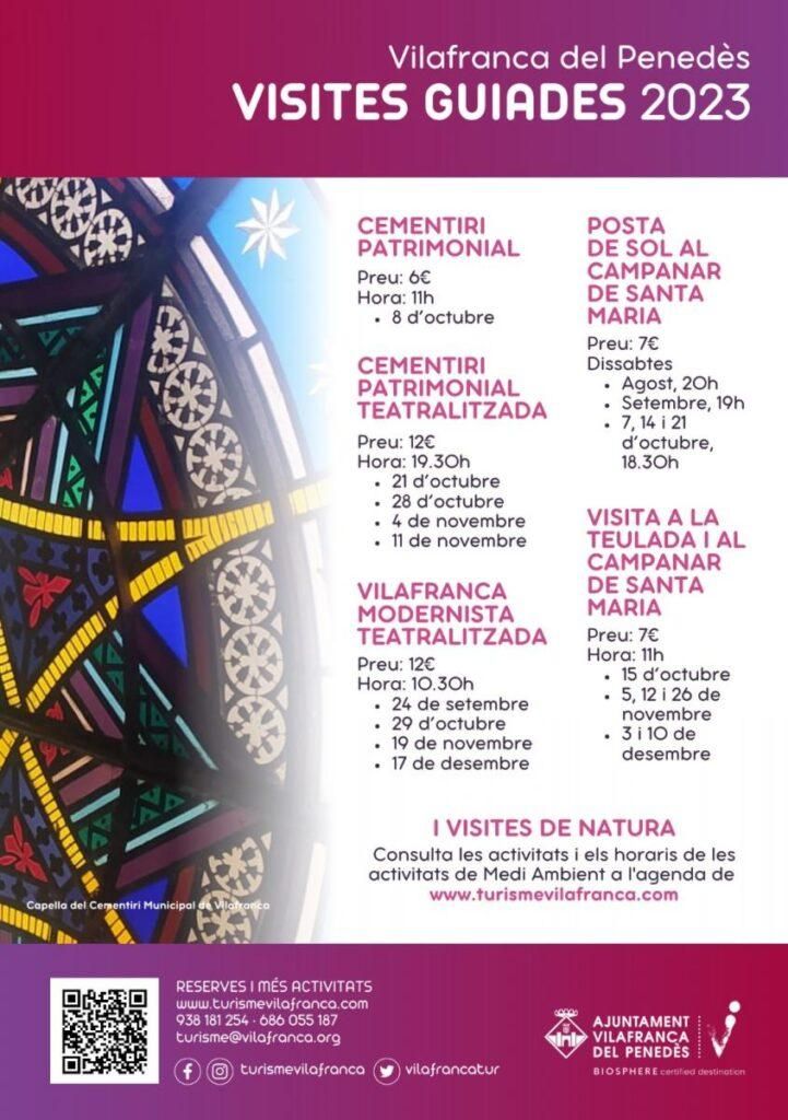 Por otro lado, el Servicio de Turismo ya tiene programadas las visitas de la próxima otoño-invierno en las que habrá las visitas teatralizadas tanto al Cementerio Patrimonial de Vilafranca como a la Vilafranca Modernista, o bien la novedad de este año que consiste en la visita al tejado y al campanario de la basílica de Santa María, una visita que no te puedes perder.
