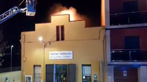 Un aparatoso incendio se declaró ayer a las diez de la noche en punto en el local social de la Societat Torregassa, en el pueblo del mismo nombre, en el municipio de Sant Jaume dels Domenys (Baix Penedès).