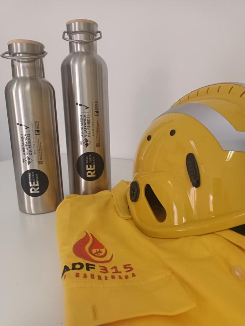 El Ayuntamiento de Vilafranca ha entregado cantimploras personales y reutilizables a los voluntarios de la ADF La Carrerada, para que en sus intervenciones puedan sustituir las botellas de agua de un solo uso y así avanzar en la eliminación de los residuos plásticos.
