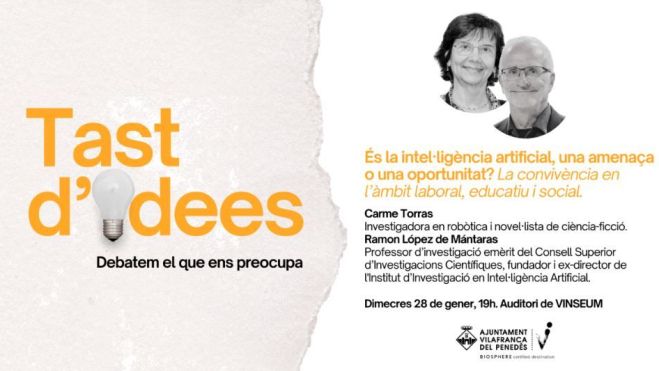 En este nuevo encuentro se planteará la pregunta “¿Es la inteligencia artificial una amenaza o una oportunidad? La convivencia en el ámbito laboral, educativo y laboral”. Participarán dos voces destacadas: Ramon López de Mántaras, profesor de investigación emérito en el Consejo Superior de Investigaciones Científicas (CSIC) y pionero europeo en inteligencia artificial, así como fundador y exdirector del Instituto de Investigación en Inteligencia Artificial; y Carmen Torras, reconocida investigadora en robótica y autora de novelas de ciencia ficción.