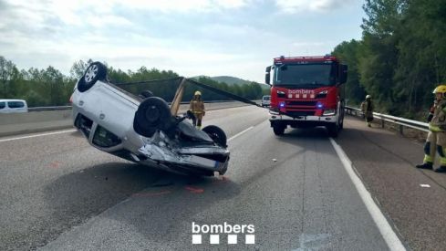 Un turismo ha quedado volcado en el carril central de la vía, con una persona atrapada dentro del vehículo. Los Bomberos han actuado para liberar a la persona, que ha sido atendida en el lugar del accidente por el Sistema de Emergencias Médicas (SEM).