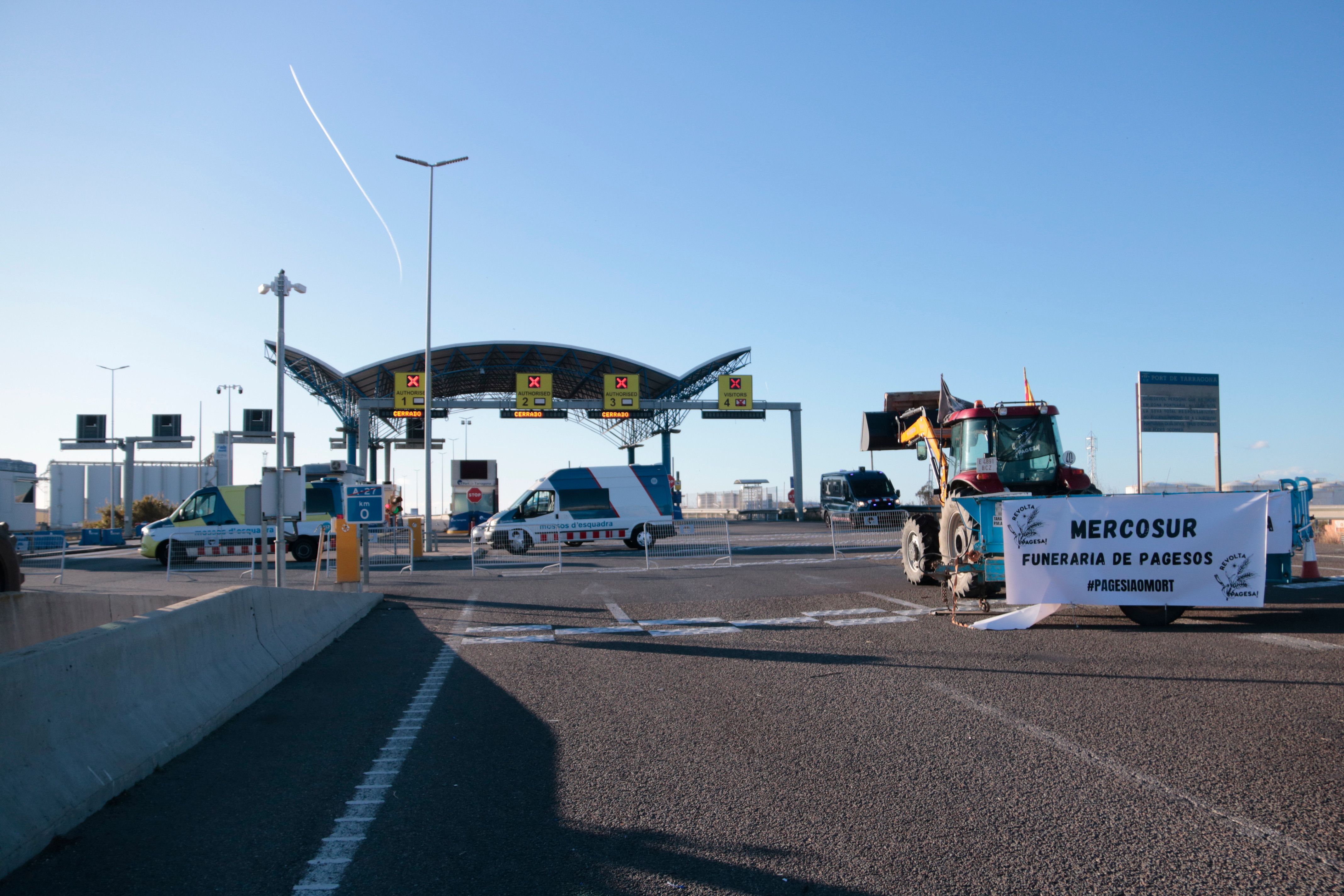 Los miembros de Revolta Pagesa que mantienen cortado el acceso principal del Puerto de Tarragona han anunciado una marcha con tractores por el centro de la ciudad este domingo como nueva acción de protesta contra el acuerdo comercial entre la Unión Europea y el Mercosur.