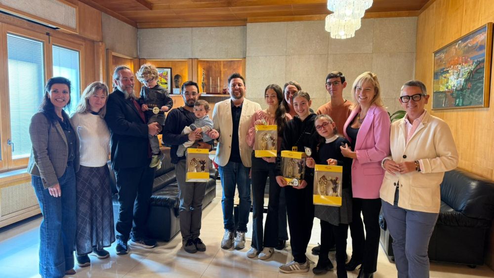 El alcalde de Tarragona, Rubén Viñuales, llevó a cabo la tradicional entrega de las monas de Pascua, ayer a mediodía en la sede de la alcaldía, a 6 niñas que llevan el nombre de Tecla nacidas en la ciudad. Padres y hermanos también asistieron para acompañarlas.