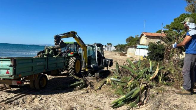 Durante los días previos, se han eliminado diversas especies vegetales invasoras, que serán sustituidas por plantas autóctonas propias del litoral mediterráneo. Esta actuación permitirá mejorar la biodiversidad y reforzar la protección natural de la playa ante la erosión y los efectos del cambio climático, a la vez que contribuye a restaurar el equilibrio ecológico de un espacio frágil y de gran valor ambiental.