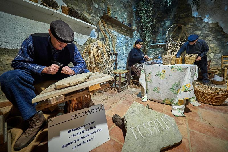 En el arranque del Belén de las Estrellas, sus organizadores fueron a buscar personas que habían practicado un oficio o que incluso en ese momento aún lo trabajaban. “Fuimos a buscar latoneros del pueblo que dijeron rápidamente que sí, un bastero que hacía 20 años que se había jubilado o una mujer colchonera que aún trabajaba”, describe Santi. A estos les han seguido oficios nuevos que algunas personas propusieron, fruto de la curiosidad. “Si sale alguna idea nueva, la integramos. Por ejemplo, había una chica que quería hacer cirios. Se documentó de cómo funcionaba y le montamos la escena”.