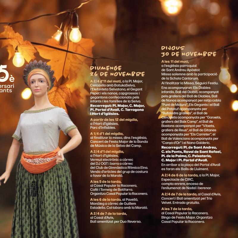 La Selva del Camp ha publicado el programa para la Fiesta Mayor de Sant Andreu, que se celebra los días 24, 25, 26 y 30 de noviembre.
