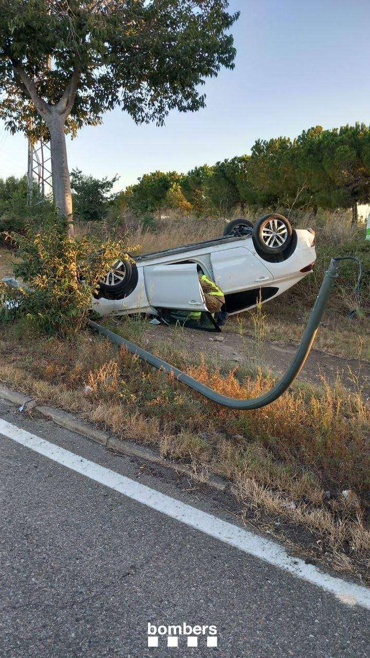 Un coche con dos ocupantes ha volcado a primera hora de la mañana de este lunes entre Tarragona y Constantí.