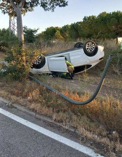 Los Bomberos, por su parte, han revisado la zona para comprobar que no hubiera riesgo eléctrico, ya que la salida de vía, en la salida de una rotonda, ha provocado la caída de una farola.