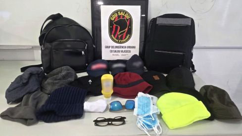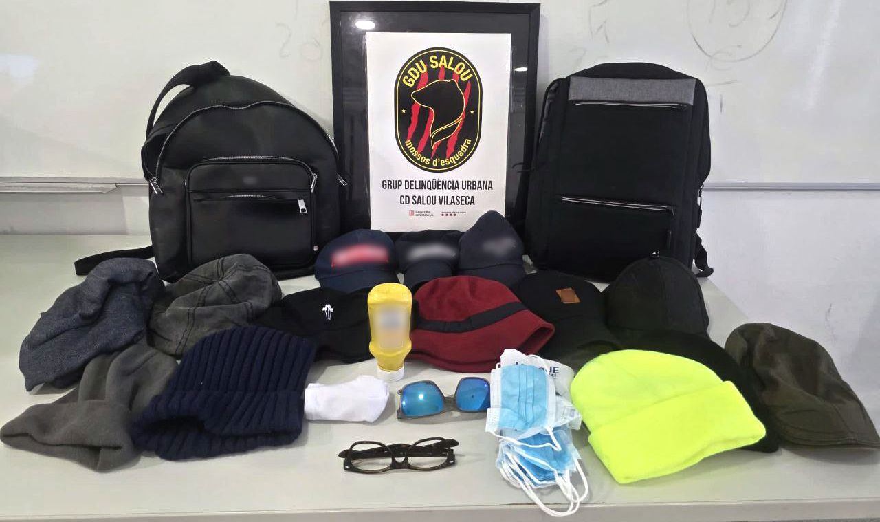 Los Mossos consiguieron detenerlos y comprobaron que el turismo era robado y que el conductor no disponía de permiso de conducir. Durante el registro del vehículo, los agentes localizaron varios objetos habituales para ejecutar el método de la “mancha”: un bote de plástico con salsa, una docena de gorras, dos mochilas vacías, gafas sin cristales, gafas de sol, una bufanda tipo pañuelo, un paquete de mascarillas quirúrgicas y un par de calcetines.