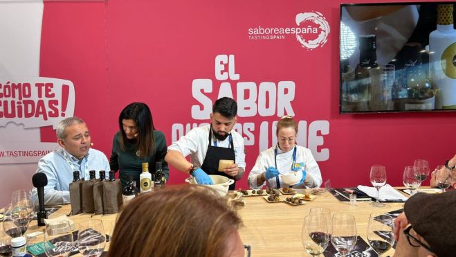 La Cooperativa Agrícola de Cambrils ha tenido un espacio protagonista en el stand de Saborea, donde el martes se llevó a cabo una cata dirigida a profesionales de agencias de viajes especializadas. En este acto, el director comercial de la Cooperativa, Fernando Sarasa, presentó el destino de Cambrils y su excelencia gastronómica a través de los aceites aromáticos de la Cooperativa, poniendo de relieve la calidad del producto local.