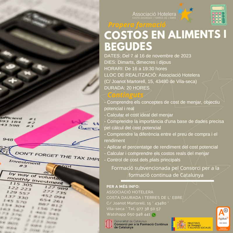 Los cursos se dirigen a partir de 30 años con independencia de su titulación y su nivel de estudios. En este momento ya se está realizando una formación sobre “Costes en alimentos y bebidas” en Vila-seca con participantes del programa 30 Plus del Ayuntamiento de Cambrils.