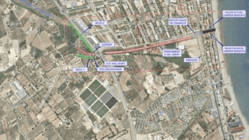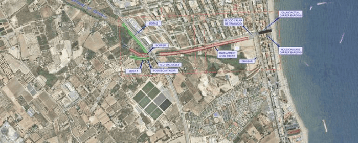 La construcción de los cajones del canal de la vía férrea hacia el mar, se ha adjudicado por un importe de 4.523.975 euros, y un plazo de 18 meses para su ejecución. En cuanto al encauzamiento a cielo abierto, de la vía del tren hasta el Vial de Cavet, se ha adjudicado por un importe de 3.149.474,15 euros, y un plazo de 18 meses.
