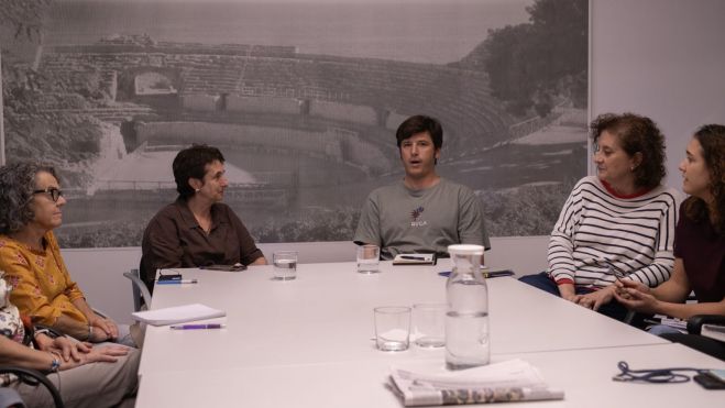 La consejera de Cooperación del Ayuntamiento de Tarragona, Cecilia Mangini, ha recibido a uno de los fundadores del colectivo No Name Kitchen, Bruno Álvarez, este miércoles 8 de octubre en el Palacio Municipal.