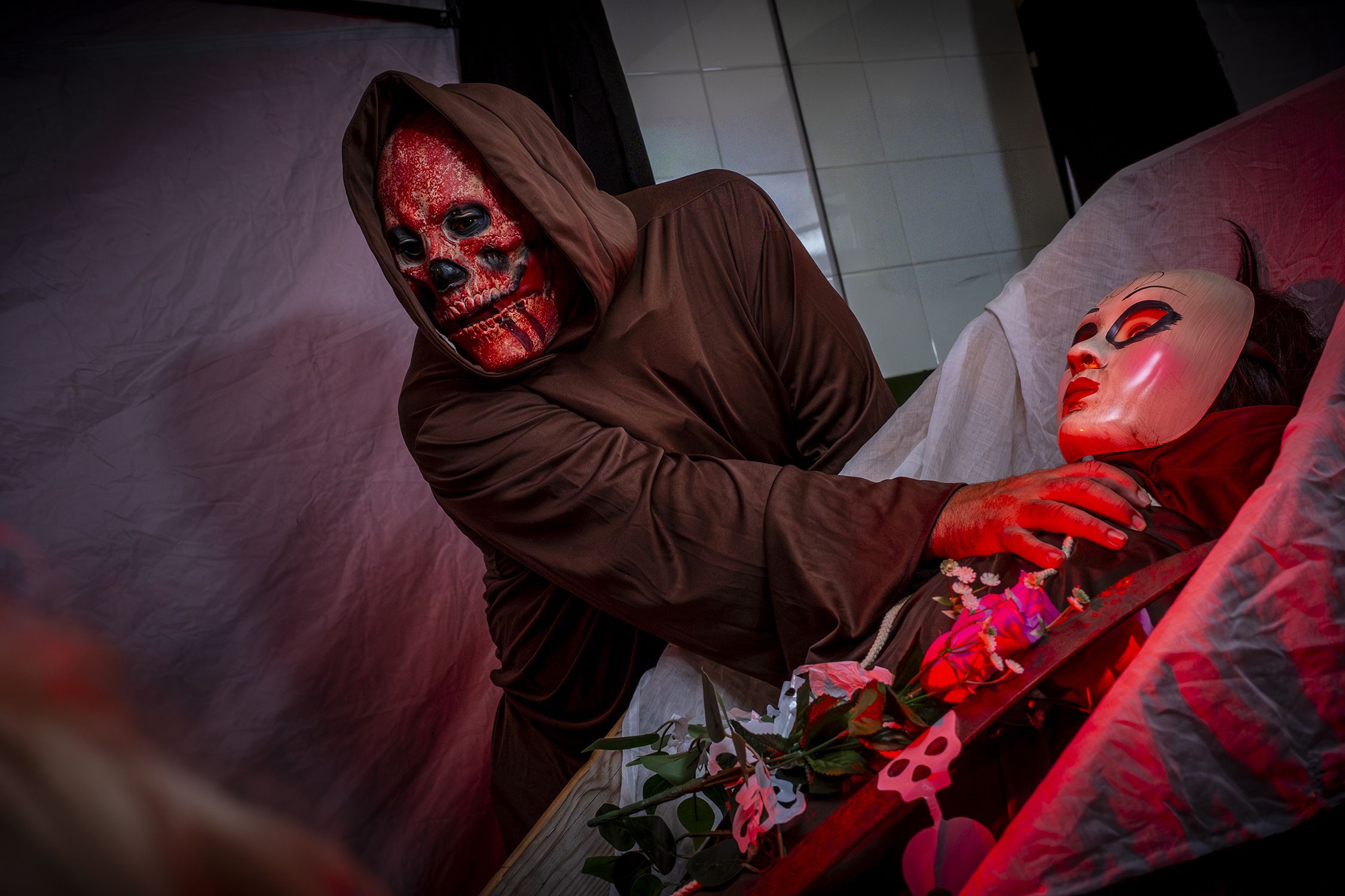 La jornada comenzó por la tarde con la apertura del pasaje del terror, que este año ha presentado dos modalidades: una versión familiar, pensada para el público infantil, que se pudo visitar de 18:00 a 20:30 h, y una versión extrema, reservada a los más valientes, que se llevó a cabo de 21:30 a 23:00 h. La ambientación, llena de personajes y escenas espeluznantes, fue uno de los principales atractivos de la noche.