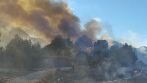 El aviso se ha recibido a las 17.20 h a través del teléfono de emergencias 112 y, según los Bomberos de la Generalitat, hasta diez dotaciones terrestres y un helicóptero trabajan en las tareas de extinción.