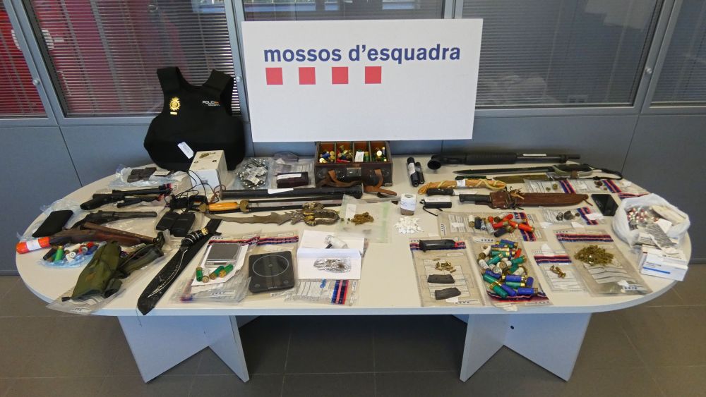 Según la policía, los tres arrestados acumulaban más de quince antecedentes policiales, y uno de ellos sería el líder del grupo. En los registros, los Mossos intervinieron varias armas de fuego, entre las cuales dos armas largas y una pistola de tiro deportivo, además de 200 cartuchos de munición, accesorios y una decena de armas blancas. También se decomisaron drogas: 37,5 gramos de cocaína, más de 300 gramos de marihuana, unos 350 gramos de hachís y 250 pastillas de fármacos sedantes.