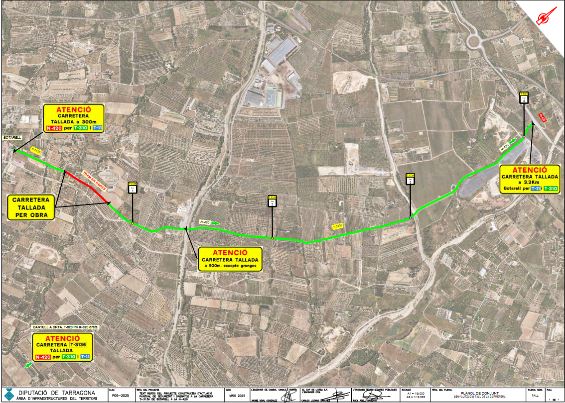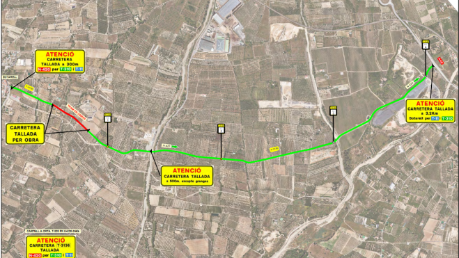 A partir del próximo 7 de abril, este segmento quedará completamente cerrado al tráfico motorizado, hecho que se alargará durante un período superior a los cinco meses previstos para la ejecución total de los trabajos. Para atenuar las molestias ocasionadas, se ha establecido un itinerario alternativo que utilizará las carreteras T-11 y T-310.