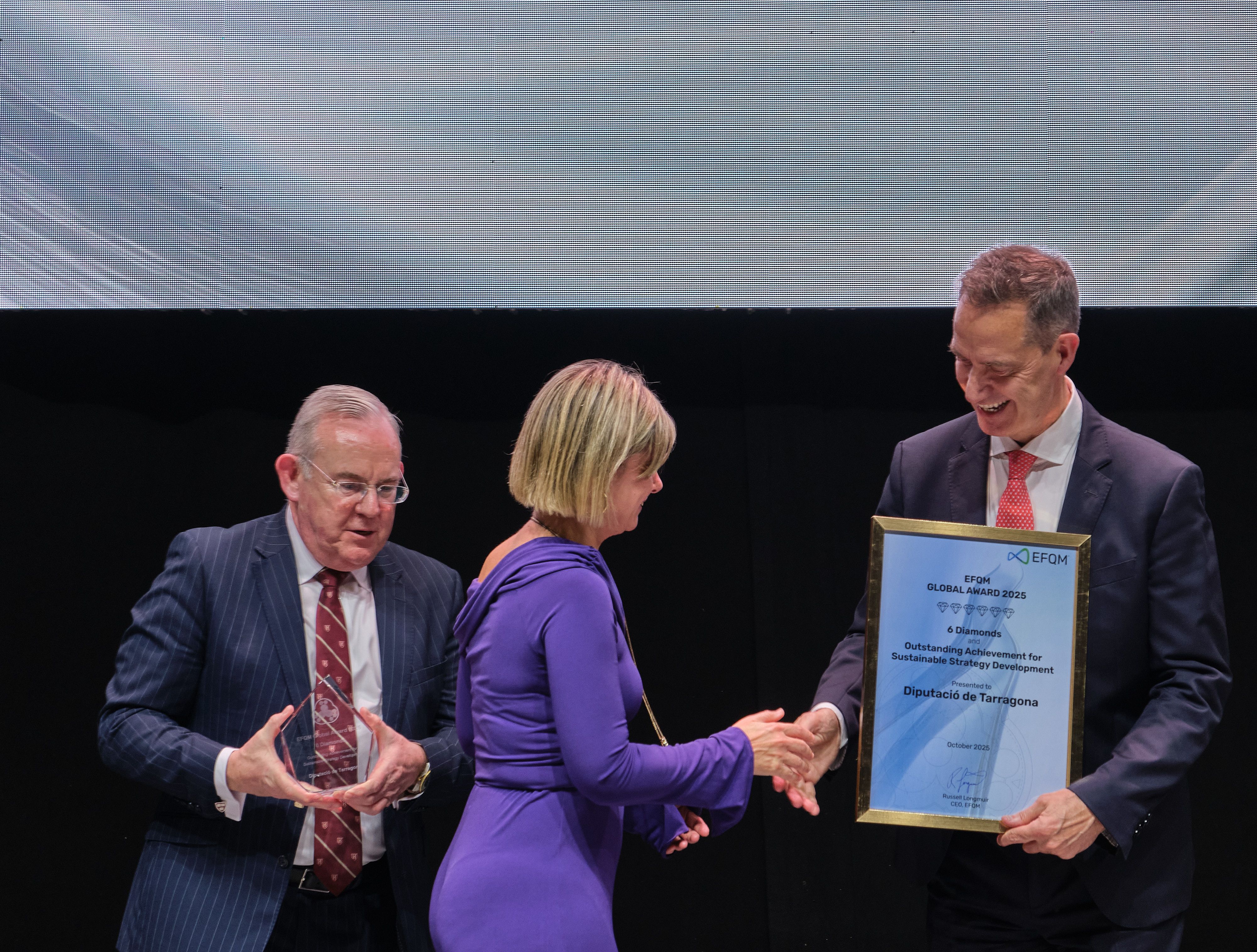 La Diputación de Tarragona ha sido premiada como una de las instituciones más excelentes del mundo por la European Foundation for Quality Management (EFQM). La presidenta de la Diputación, Noemí Llauradó, ha recogido el galardón 6 diamantes y el Premio a la excelencia en el desarrollo de una estrategia sostenible durante el EFQM Global Award 2025 que se ha celebrado en la Tarraco Arena de la Diputación. Estos distintivos le otorgan un reconocimiento equivalente al obtenido en 2022 pero con una dimensión internacional, dado que es la primera vez que la Diputación de Tarragona se somete a un grupo de expertos de la EFQM procedentes de diferentes países. En esta ocasión, la institución ha obtenido 663 puntos, superando así la puntuación de la anterior evaluación.