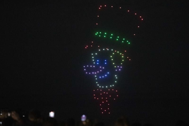 La hora de inicio prevista del espectáculo de drones, siempre que las condiciones meteorológicas lo permitan, será a las 18.30 h. Tres cuartos de hora antes, a las 17.45 h, comenzará el reparto de 1.300 raciones de chocolate, a la altura del Balconet del Mediterráneo, en el paseo marítimo Rafael Casanova.
