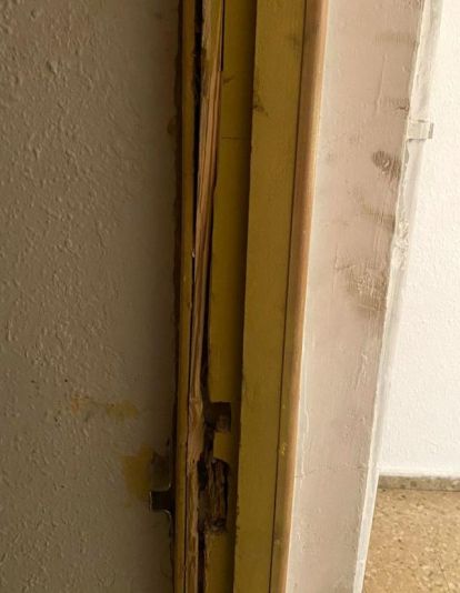 Al llegar al lugar, los mozos localizaron a dos hombres en el ascensor que estaban cargando dos compresores de aire acondicionado. Mientras los agentes identificaban a los dos sospechosos, observaron restos de la pared y el marco de la puerta de uno de los pisos de esa misma planta en el suelo.