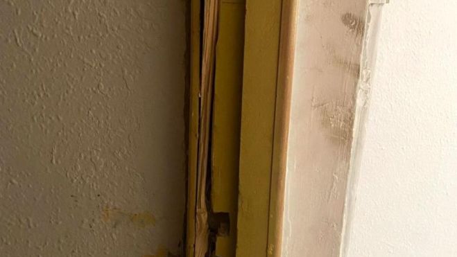 Al llegar al lugar, los mozos localizaron a dos hombres en el ascensor que estaban cargando dos compresores de aire acondicionado. Mientras los agentes identificaban a los dos sospechosos, observaron restos de la pared y el marco de la puerta de uno de los pisos de esa misma planta en el suelo.