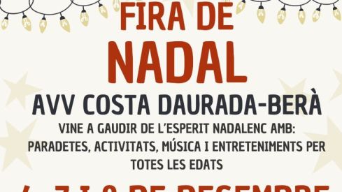 El barrio de Costa Daurada-Berà se prepara para vivir un fin de semana festivo con la gran Feria de Navidad, que se celebrará los días 6, 7 y 8 de diciembre. La iniciativa, organizada por la asociación vecinal del barrio y Uniart Ferias, cuenta con el apoyo del Ayuntamiento y combinará tradición, ocio familiar y solidaridad.