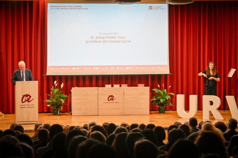 Josep Poblet, hizo énfasis en el hecho de que a la URV le hace falta “una justa compensación”. Y lo ha ejemplificado en datos: los estudiantes que reciben las becas del Ministerio, subvencionadas en parte por la misma Universidad, provienen de las familias con la renta per cápita más baja del mapa universitario y, a la vez la URV es la universidad que recibe más estudiantes becados, 9 puntos por encima de la media catalana. “Y esto no ha impedido que la URV esté en posiciones punteras, por lo tanto, hace falta un contrato social para que la Universidad disponga de fondos adicionales para paliar la debilidad económica de las familias”.