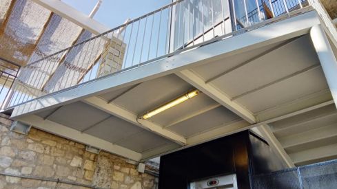 La Brigada Municipal, en colaboración con el Departamento de Ingeniería Industrial del Ayuntamiento, ha sustituido las planchas metálicas del rellano del primer piso del ascensor del Anfiteatro que estaban dañadas por el paso del tiempo.