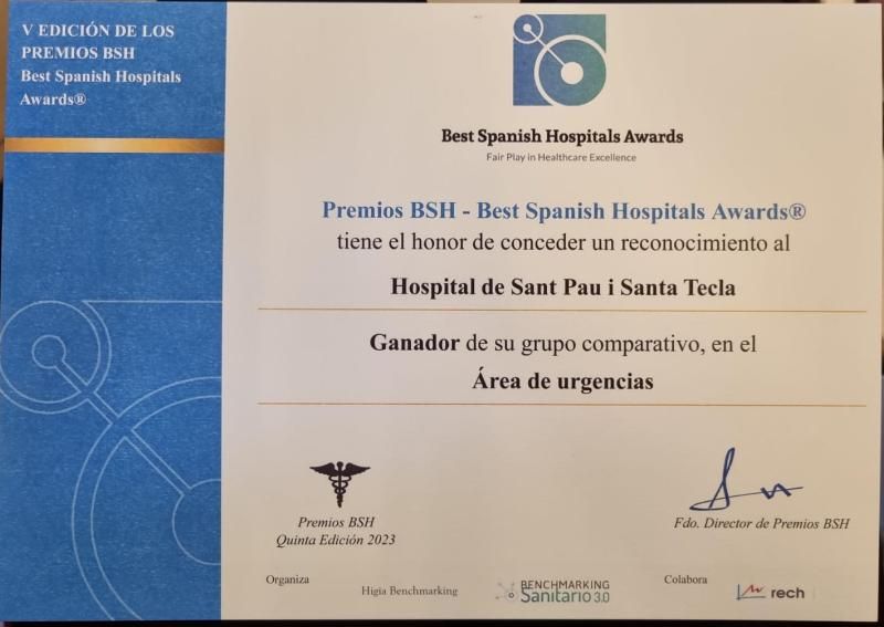 El área de urgencias del Hospital de Santa Tecla ha sido reconocida como el mejor servicio de esta área en su categoría. El director del hospital, Xavier Oliach, ha sido el responsable de recibir el galardón en la ceremonia de reconocimiento.