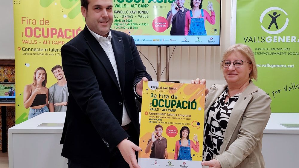 Esta mañana se ha presentado la 3ª edición de la Feria de Empleo de Valls y el Alt Camp, que se celebrará el jueves 16 de abril en el Pabellón Municipal Xavi Tondo i Volpini del Fornàs, con el objetivo de conectar las necesidades de las empresas con el talento del territorio e impulsar el empleo en el Alt Camp.