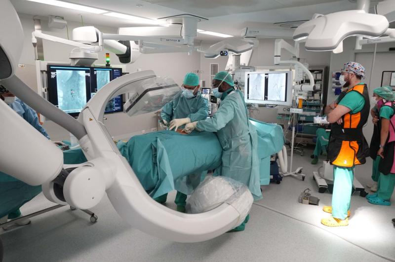 Neurocirugianos del Hospital Joan XXIII de Tarragona, concretamente del Servicio de Neurocirugía que dirige el Dr. Andreu Gabarrós, jefe de la unidad extendida que engloba el Hospital Universitario de Bellvitge y el Hospital Joan XXIII, reconstruyeron las vértebras de un paciente que había sufrido un mieloma (tumor), con la técnica Needle Guide del angiógrafo Artis pheno de Siemens Healthineers. Esta técnica avanzada, poco agresiva para el paciente, combina imágenes en tiempo real con un software de navegación que guía a los neurocirujanos en procedimientos percutáneos complejos, como la colocación de tornillos transpediculares o, como en este caso concreto, en la vertebroplastia.