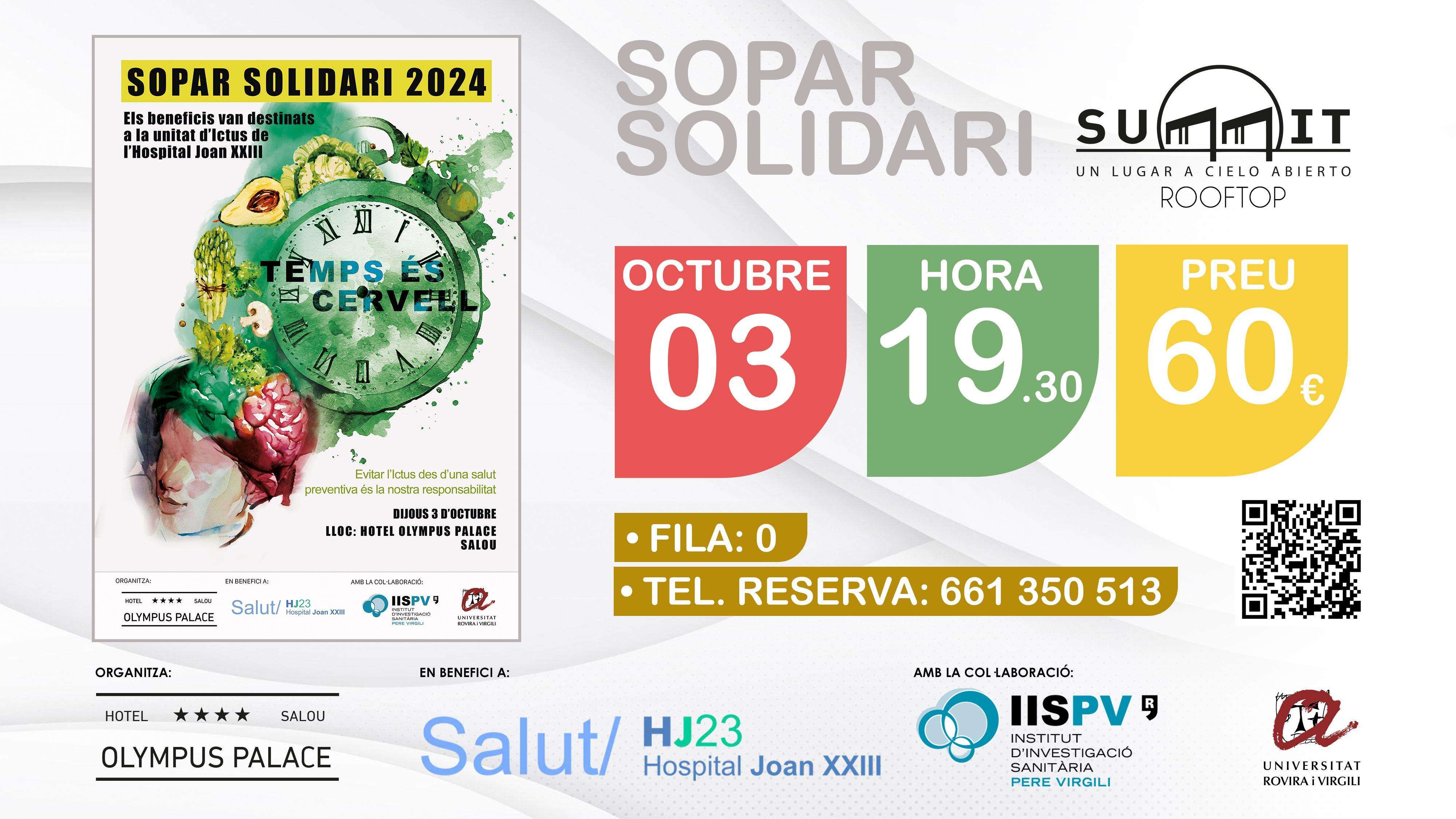 La cena benéfica se celebrará el jueves 3 de octubre a las 19:30h, en el espectacular rooftop SUMMIT del Hotel Olympus Palace 4*.El precio destinado a la causa benéfica es de 60 euros por persona.También hay una fila cero para todas aquellas personas y entidades que quieran colaborar.