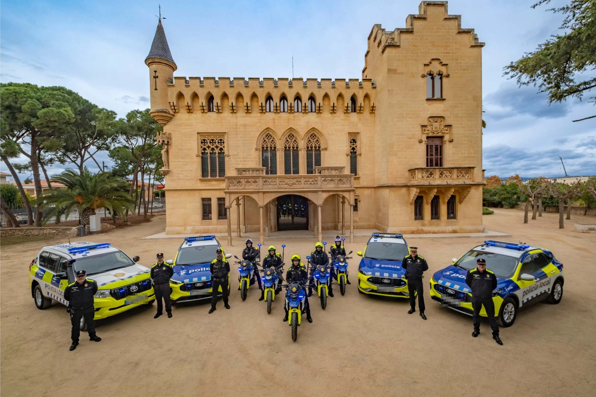 La Policía Local de Vila-seca ha renovado recientemente su parque móvil con la incorporación de 4 nuevos vehículos y 6 motocicletas. Los nuevos vehículos híbridos, modelo Ford Kuga y Toyota Land Cruise, y 5 de las motocicletas, acompañados de varios agentes de la Policía Local, han sido fotografiados en el jardín del Castillo de Vila-seca.