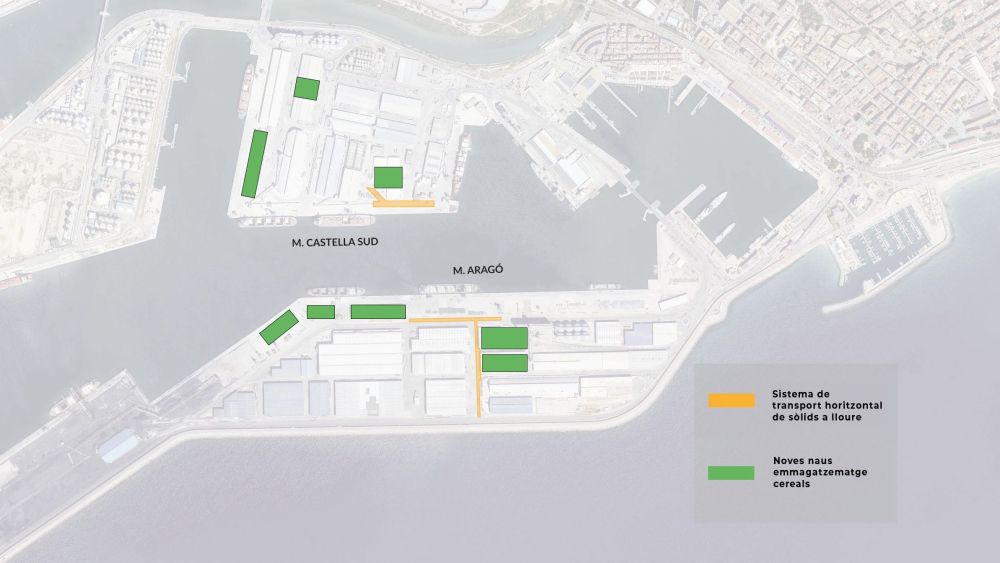 La adjudicación para la edificación de dos almacenes con una superficie conjunta de 15.000 metros cuadrados, especializados en productos agroalimentarios a granel, ha sido concedida a la empresa Bergé. Las naves se ubicarán en el Muelle de Aragón y en el Muelle de Navarra, zonas contiguas a un almacén existente gestionado por el mismo operador, que también se someterá a un proceso de renovación. Esta actuación comportará una inversión aproximada de 5.507.111,49 euros. Además, Bergé se compromete a gestionar un tráfico mínimo anual de 353.153 toneladas. La concesión tendrá una vigencia establecida en 32 años y 252 días.