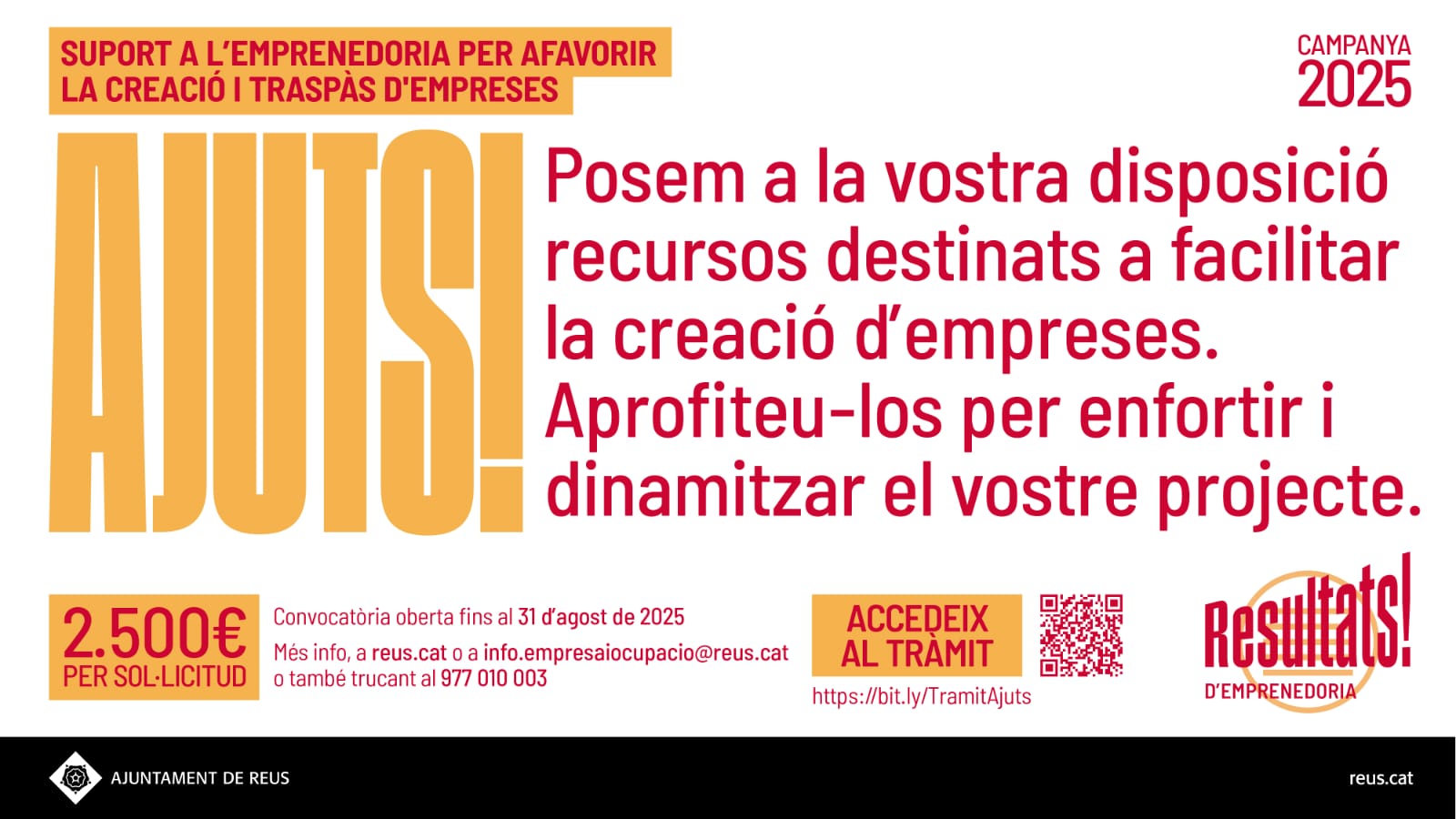 El Ayuntamiento de Reus, a través de la Concejalía de Empresa, Formación y Ocupación, ha cerrado la convocatoria de ayudas de Empresa 2025 con 58 solicitudes recibidas, superando las previsiones. Con una dotación total de 85.000 euros, la iniciativa ha experimentado un notable incremento de demandas, siendo esta la edición con más peticiones desde la creación de las subvenciones, que están destinadas a fomentar la actividad económica y el emprendimiento en la ciudad. Las solicitudes fueron presentadas hasta el 31 de agosto, y podían optar a ellas las empresas creadas o traspasadas desde octubre de 2023 hasta agosto de 2025.
