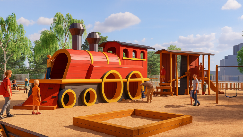 El nuevo tren de juego, de 25 metros de longitud, casi 5 metros de altura y 4,5 metros de anchura, contará con una locomotora principal jugable por dentro y por fuera, equipada con redes, zonas de refugio y elementos interactivos. A continuación, un vagón de mercancías semiabierto incluirá un tobogán de acero inoxidable y un recorrido lleno de retos para los niños, fomentando la motricidad, el equilibrio y la imaginación.