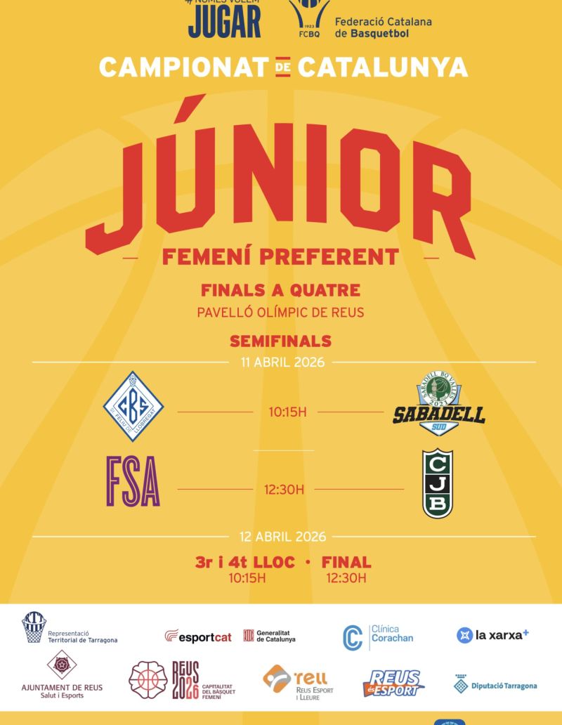 Los próximos días 11 y 12 de abril, la ciudad de Reus será sede de la final femenina a cuatro correspondiente al Campeonato de Cataluña Júnior Femenino Preferente 2025-26. Este evento deportivo tendrá lugar en el Pabellón Olímpico Municipal, donde se enfrentarán los conjuntos del Loquillo Femenino Sant Adrià A, el CBS Fem U18, el Sabadell BQ Vallès U18F y el Joventut Badalona A.